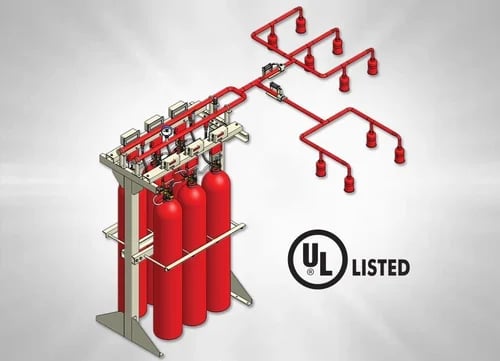 أنظمة إطفاء متطورة باستخدام FM200 و CO₂ لحماية المناطق الحساسة.