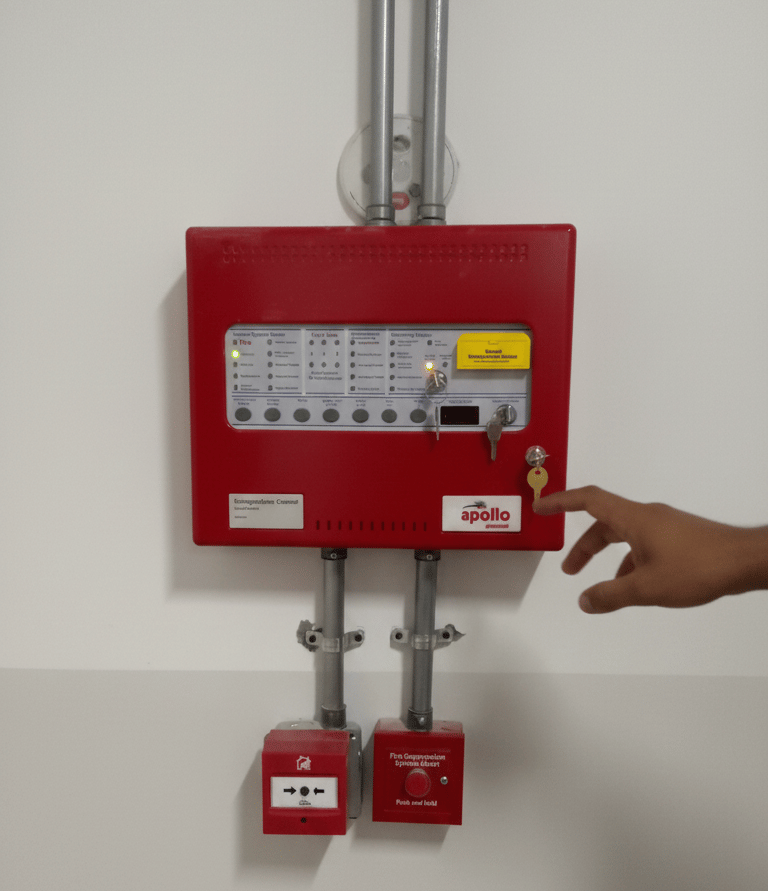 ⚙️ نوع المشروع: أجهزة إضافية لنظام إنذار الحريق + نظام التحكم في الدخول وربط منظومة الاطفاء بانذار الحريق